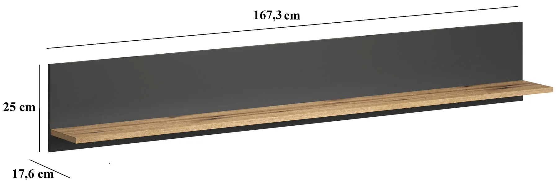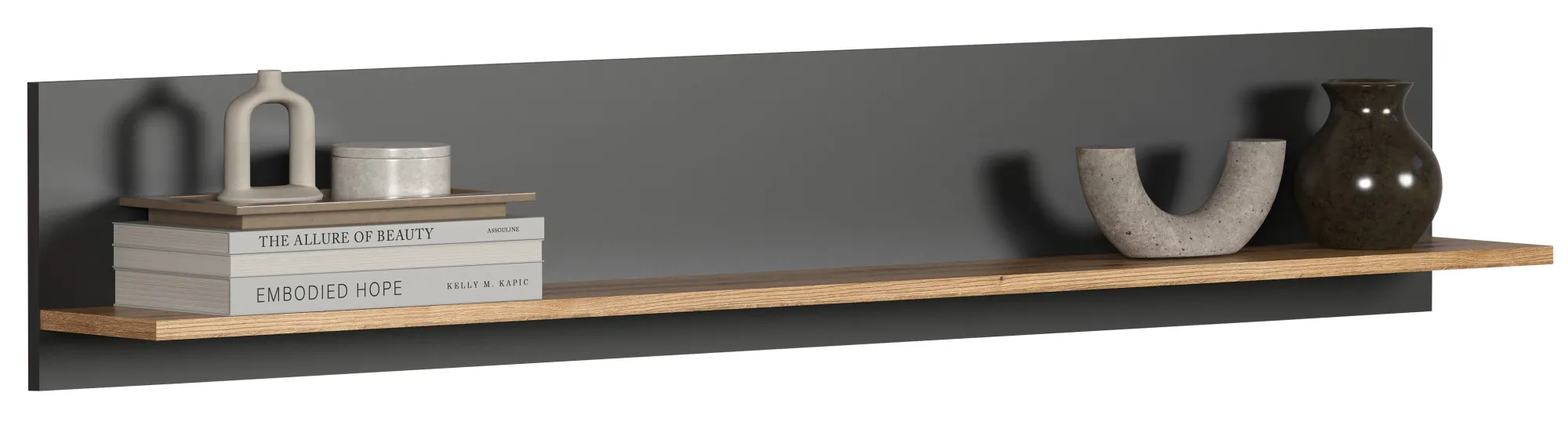 Półka ścienna 150 cm grafit + dąb evok - Assoni 7X