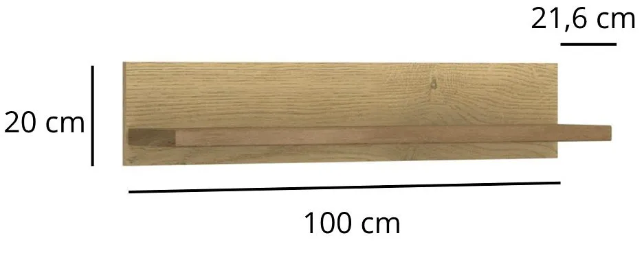 • Szerokość: 100 cm, wysokość: 20 cm, głębokość 21,5 cm.