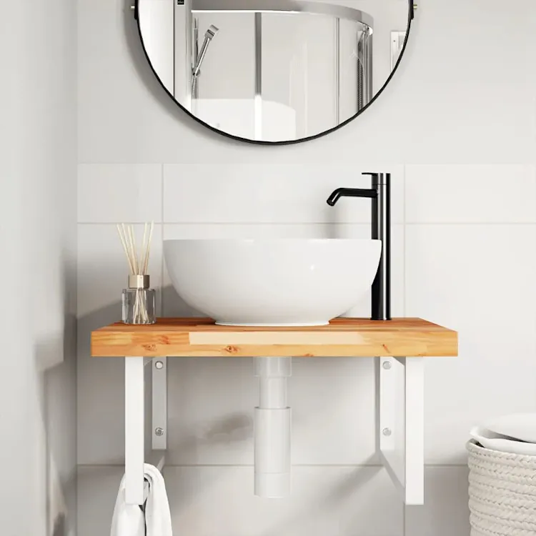 • Kolor: biały oraz naturalne drewno akacjowe z olejowym wykończeniem. W naszej ofercie posiadamy także inne półki ścienne pod umywalkę.
