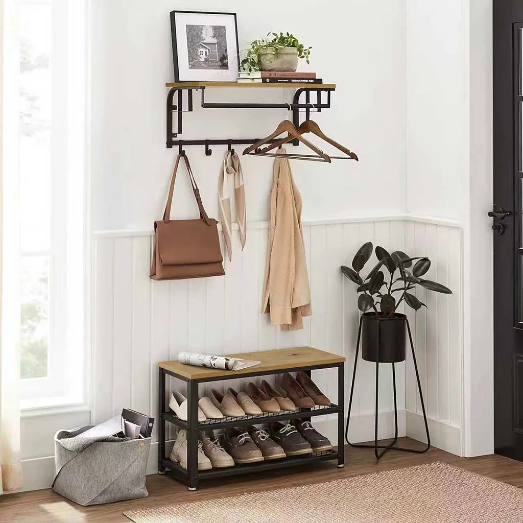 półka na czapki, drążek na kurtki i haczyki na torby to wszystko w kompaktowej formie,kolor dąb artisan dobrze współgra z akcentami czerni i metalu w przedpokoju i mam więcej porządku i wygląda to naprawdę estetycznie.