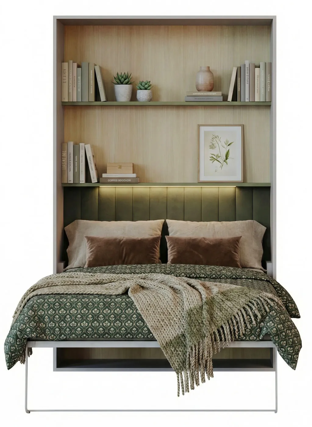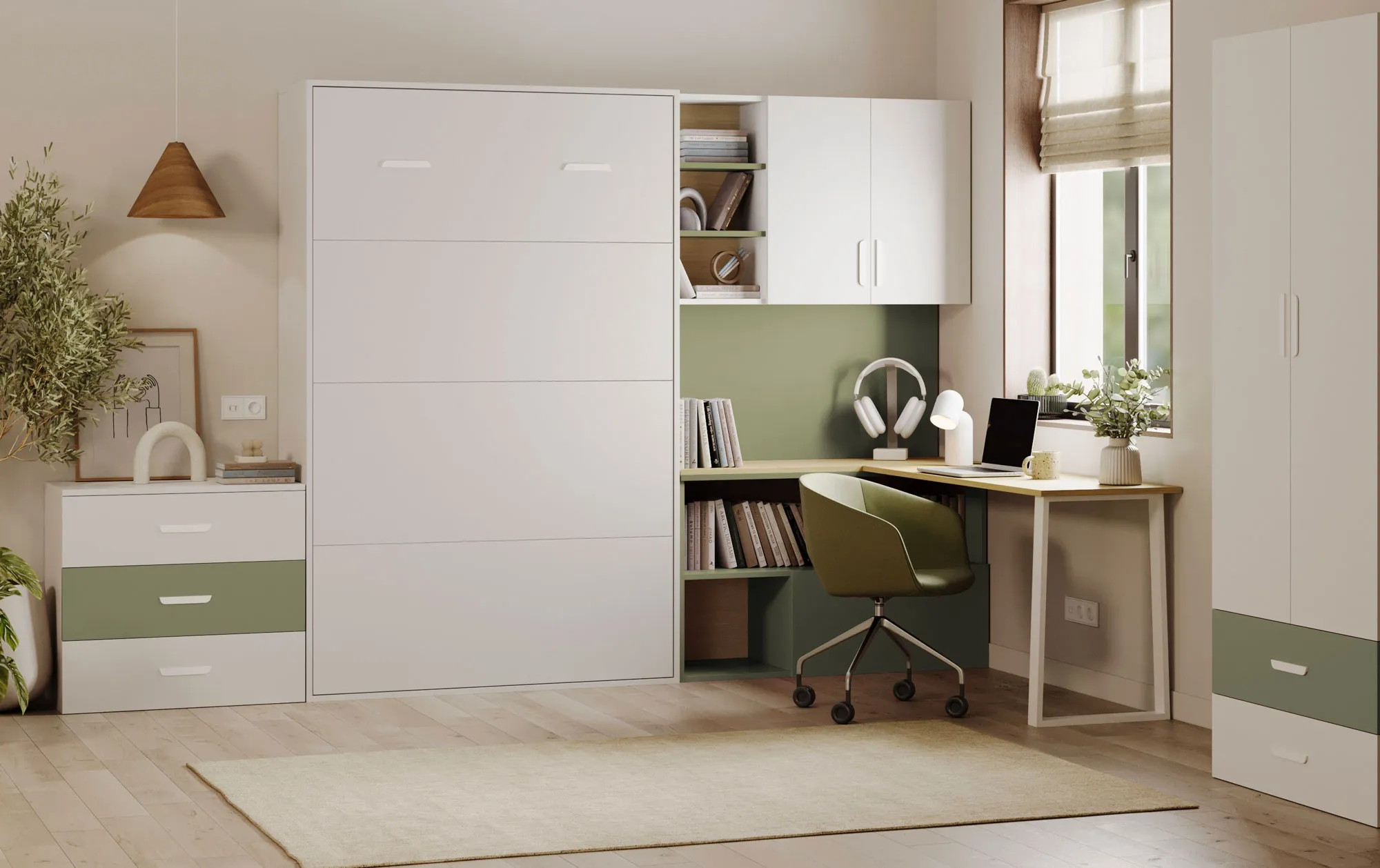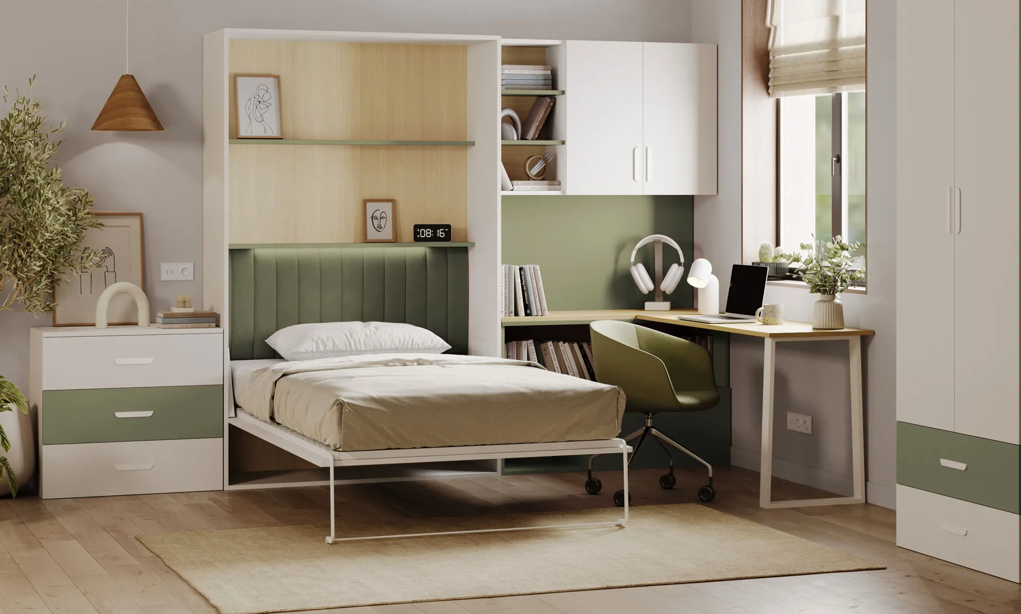 • System składania łóżka w zabudowie szafy pozwala na pełne wykorzystanie przestrzeni w ciągu dnia.