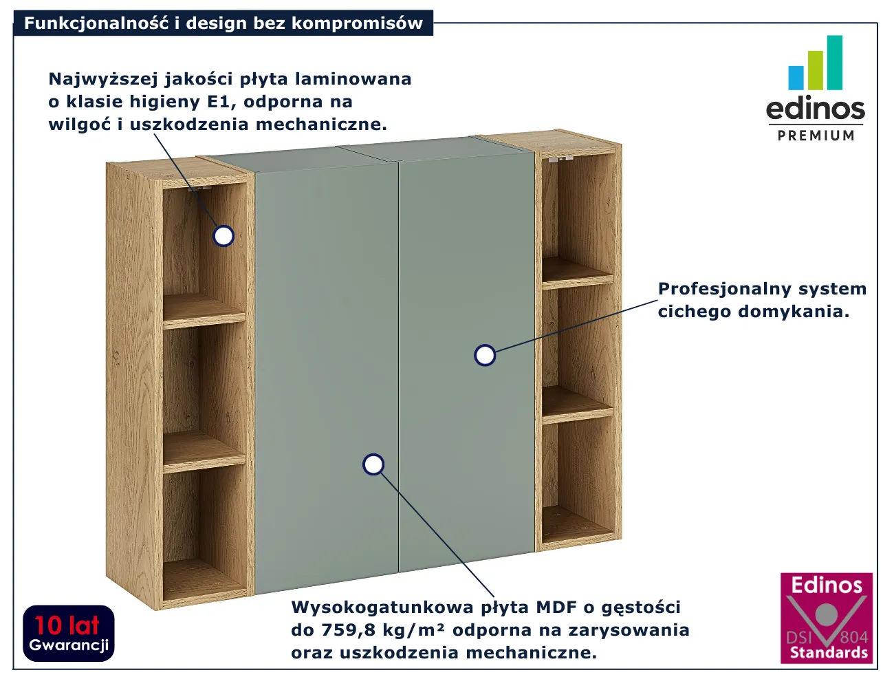 • połączenie zamkniętej szafki z praktycznymi, otwartymi półkami bocznymi,