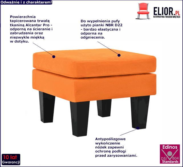 - Modny kolor: pomarańczowy. Kliknij w link i sprawdź także inne pufy w sklepie Edinos.pl. Stwórz swój praktyczny zestaw mebli.