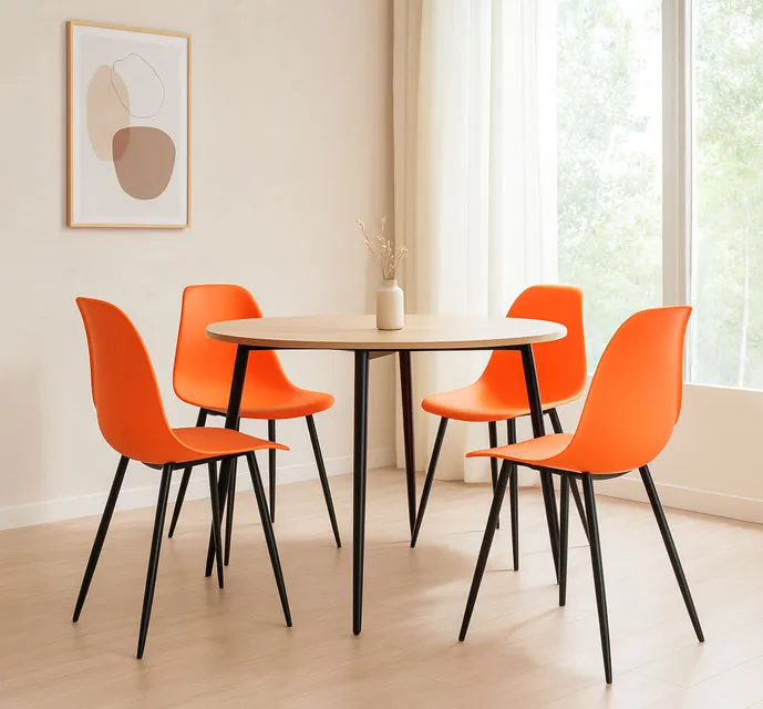 Aranżacja z wykorzystaniem pomarańczowego krzesła z czarnymi nogami Exin 4X