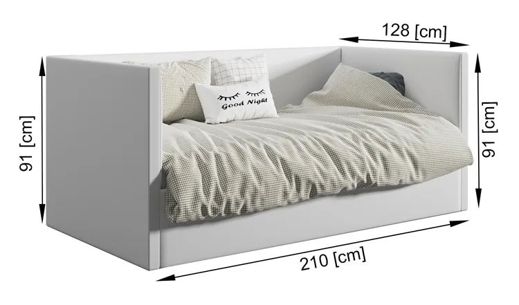 • Wymiary: wysokość całkowita: 91 cm, szerokość: 88 cm, długość: 210 cm.