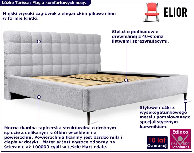 Dotyczy: Łóżko dwuosobowe z pikowanym zagłówkiem Idor - 3 rozmiary