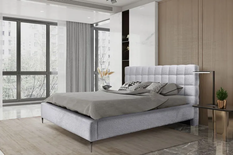 Sypialnia nowoczesna z wykorzystaniem łóżka tapicerowanego Idor popielate