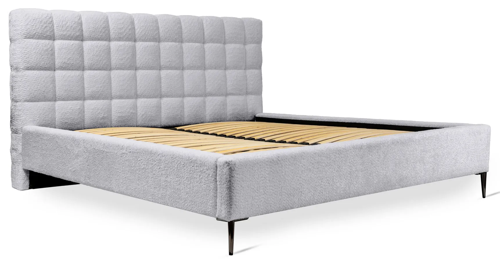 Popielate łóżko tapicerowane na metalowych nożkach Idor - 3 rozmiary