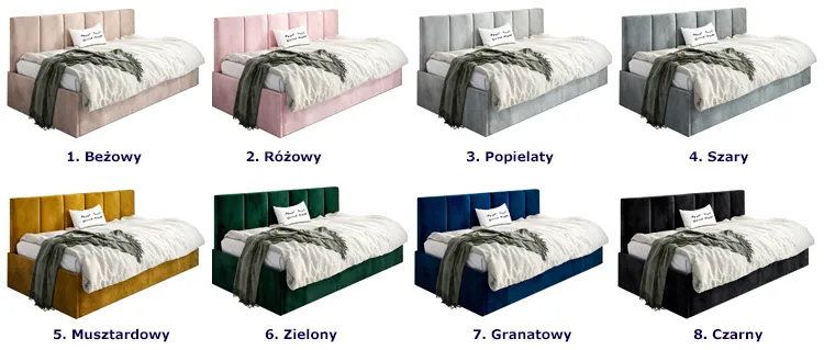 Dotyczy: Zielone welwetowe łóżko młodzieżowe Golones 7X - 4 rozmiary