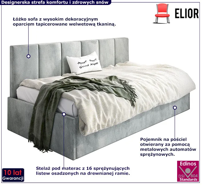 Dotyczy: Szary młodzieżowy tapczan z oparciem Golones 7X - 4 rozmiary