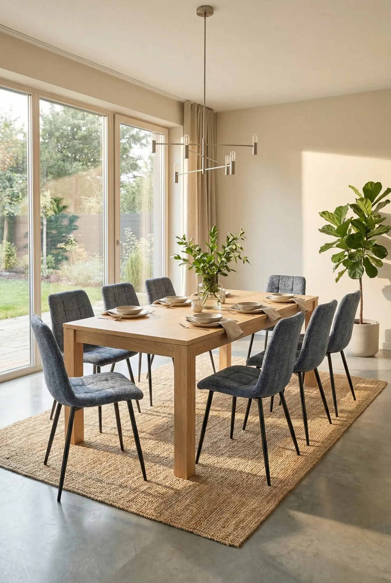 Aranżacja jadalni z pikowanymi krzesłami Nimbus