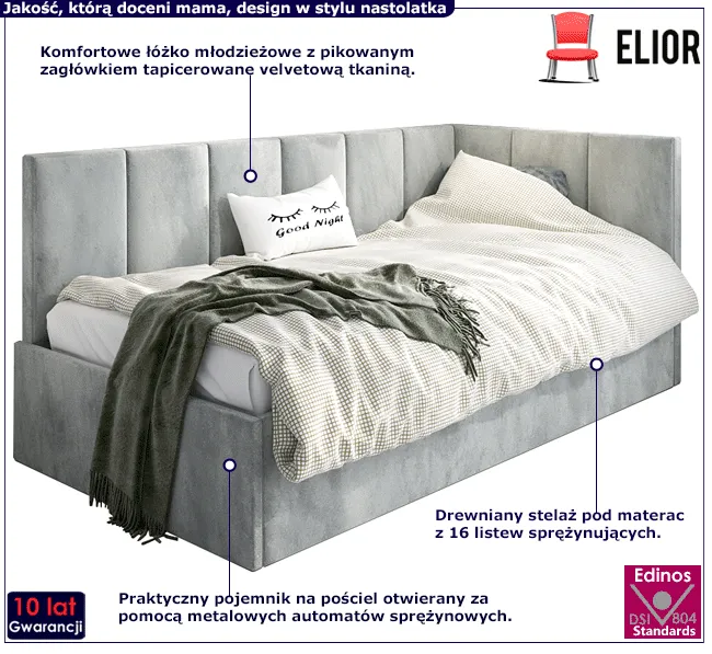 Dotyczy: Szary tapicerowany tapczan młodzieżowy z oparciem typu L 120x200 - Golones 5X