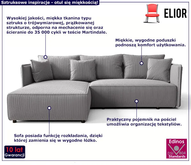 Dotyczy: Waniliowy sztruksowy narożnik z funkcją spania - Tentis
