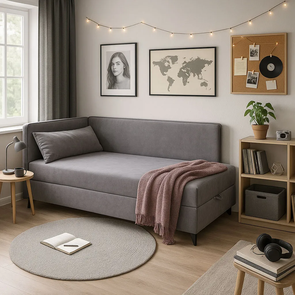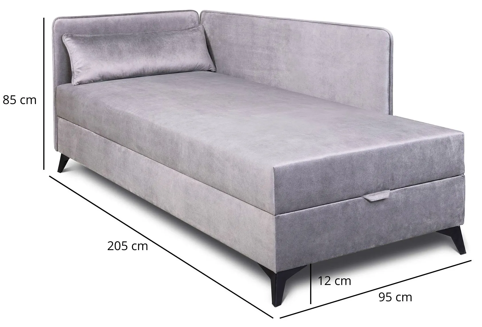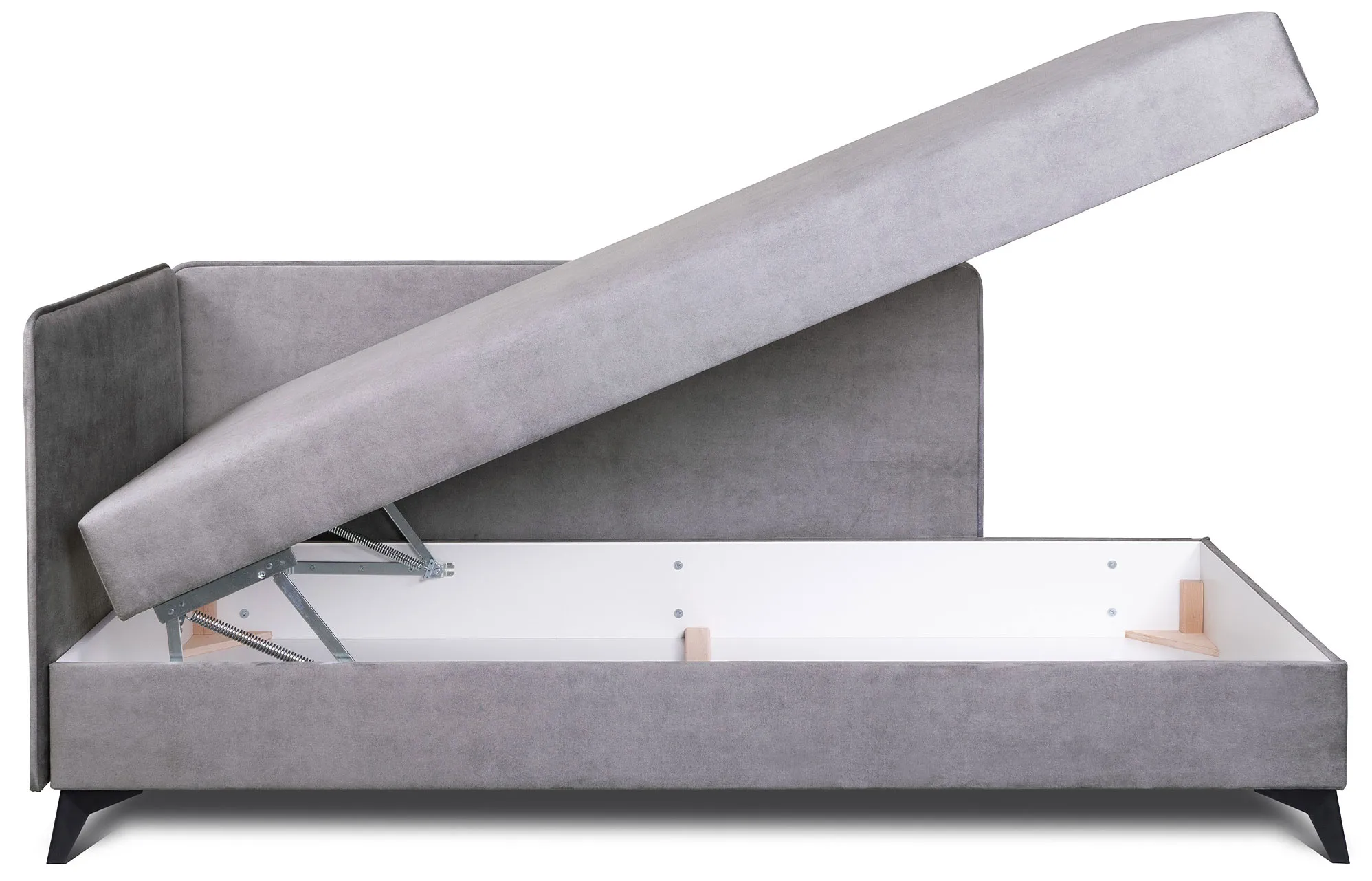 Szary tapczan narożny z pojemnikiem do pokoju nastolatka Finito
