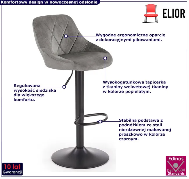 Dotyczy: Czarny tapicerowany hoker z regulacją wysokości - Atazia