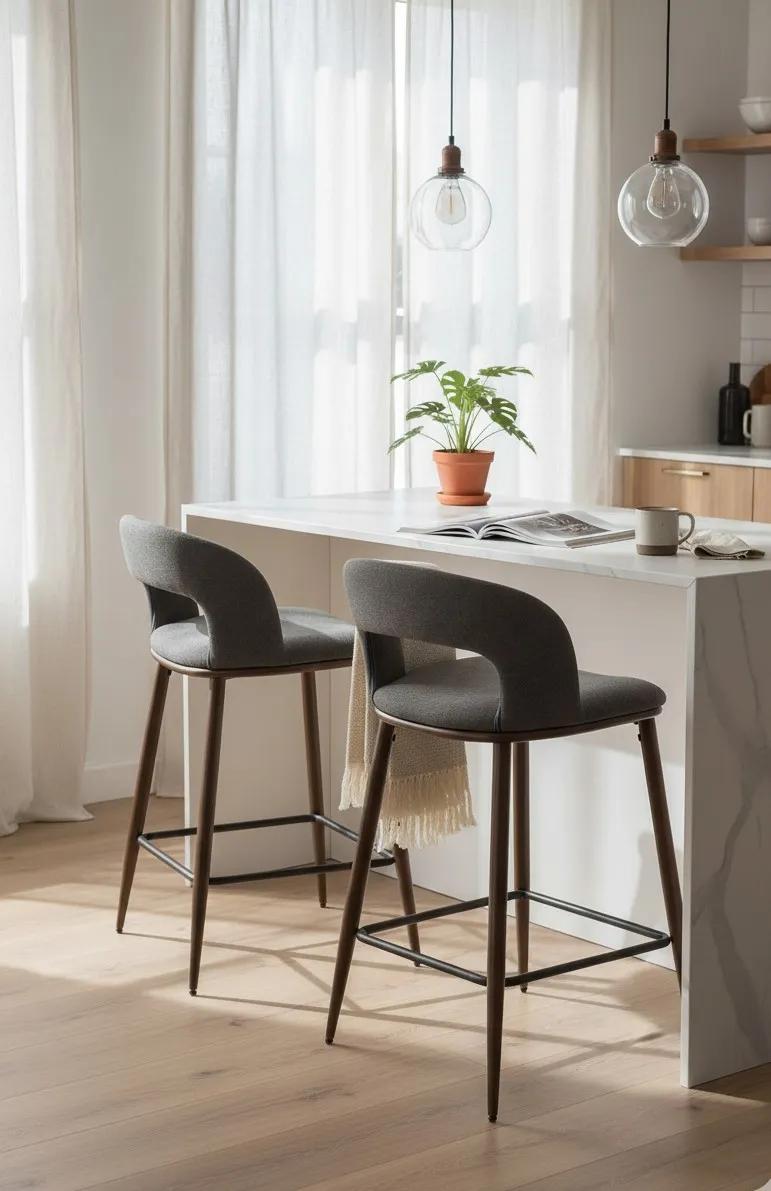 Hoker prezentuje się elegancko, a tapicerka z welwetu jest przyjemna w dotyku. Siedzisko wygodne, oparcie dobrze wyprofilowane. Całość stabilna, nie chwieje się. Montaż szybki i bezproblemowy. Świetnie pasuje do kuchennej wyspy i nowoczesnego wnętrza.