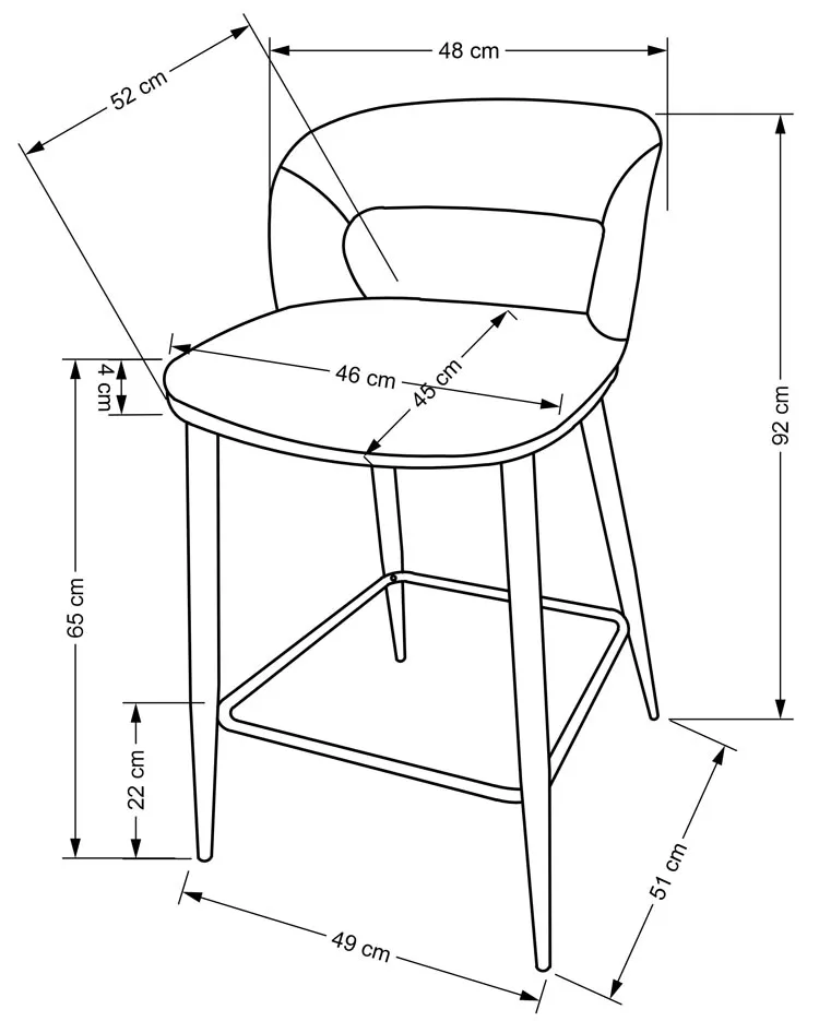 • Welwetowe wykończenie: Dzięki miękkiej, welwetowej tapicerce, hoker zapewnia niezrównany komfort siedzenia, tworząc przytulną atmosferę.