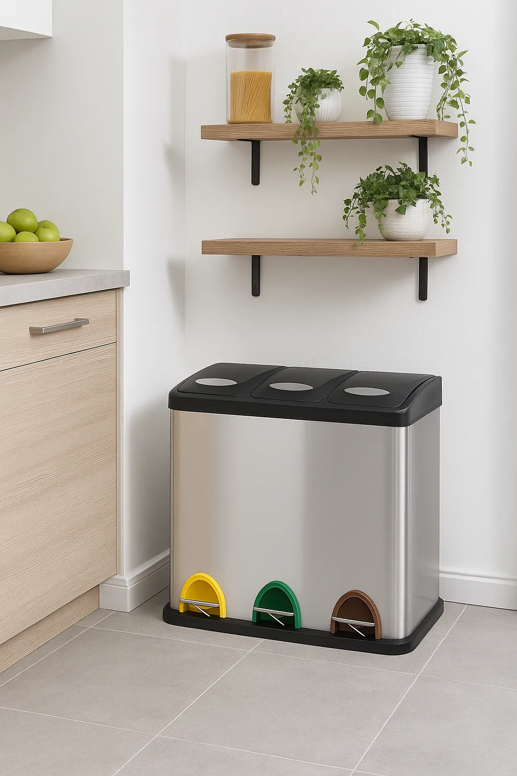 Dotyczy: Stalowy kosz do segregacji śmieci z 3 pojemnikami 24L - Vardi 4X
