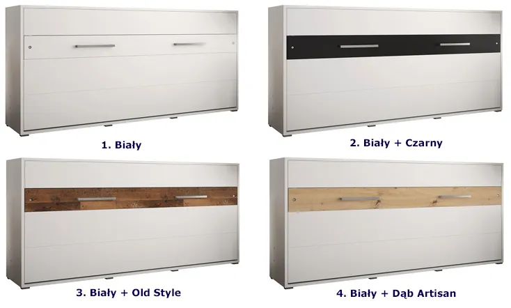 Wizualizacja poziomego półkotapczanu Tebriz 4X kolor biały+dąb artisan