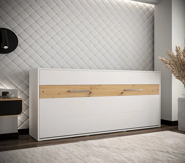 Poziome rozkładane łóżko biały + dąb artisan - Tebriz 4X 120x200