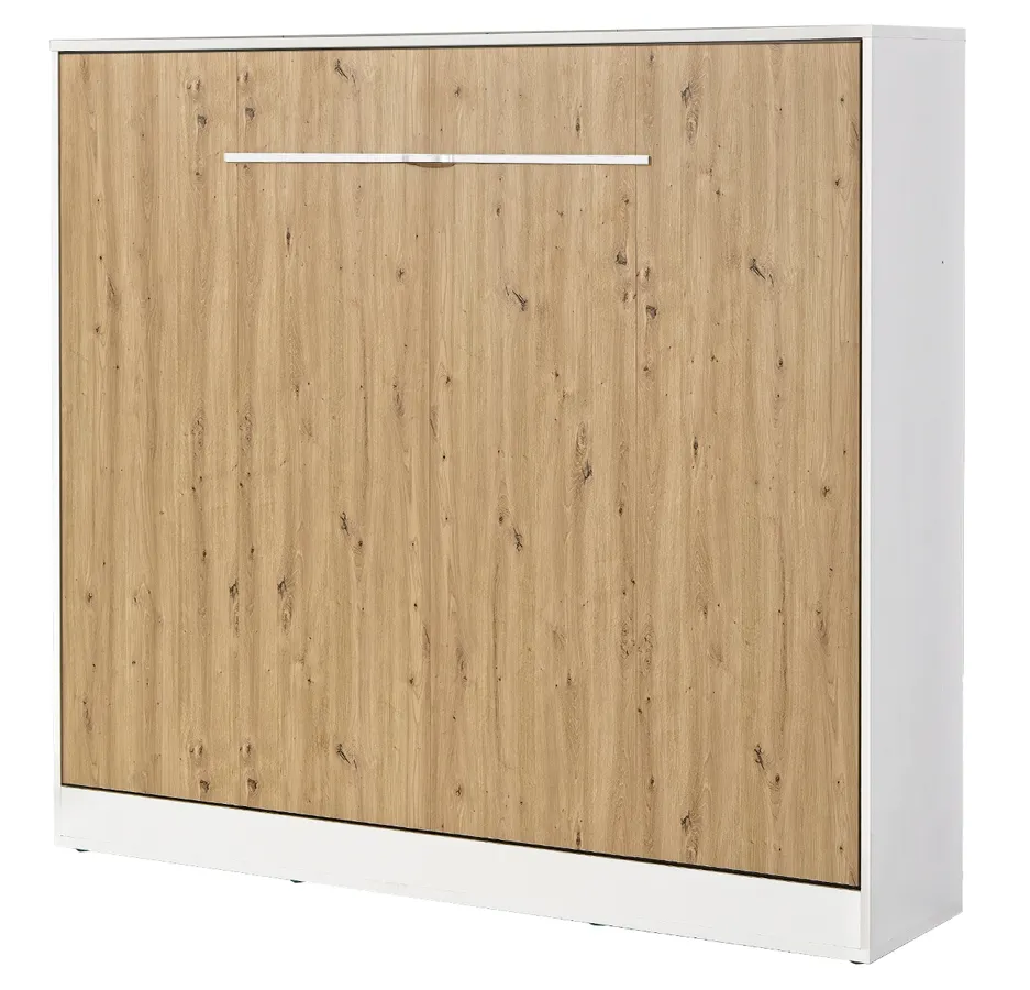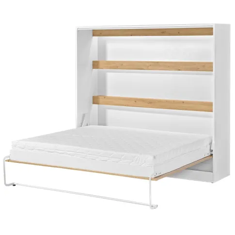 Poziomy tapczan rozkładany biały + dąb - Ratisso 6X 160x200