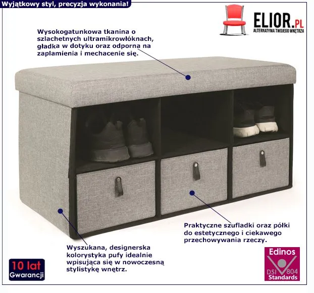 - Modna kolorystyka: szary, czarny. Kliknij w link i sprawdź także inne pufy w sklepie Edinos.pl. Stwórz swój praktyczny zestaw mebli.