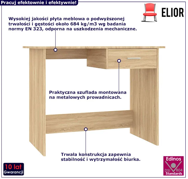 Proste biurko z jedną szufladą dąb sonoma - Mirden