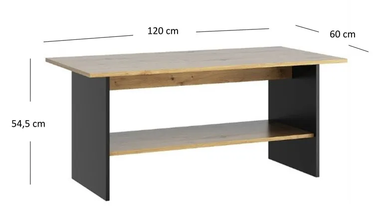 Nowoczesna ława salonu dąb artisan z czarnym Flaser 4X