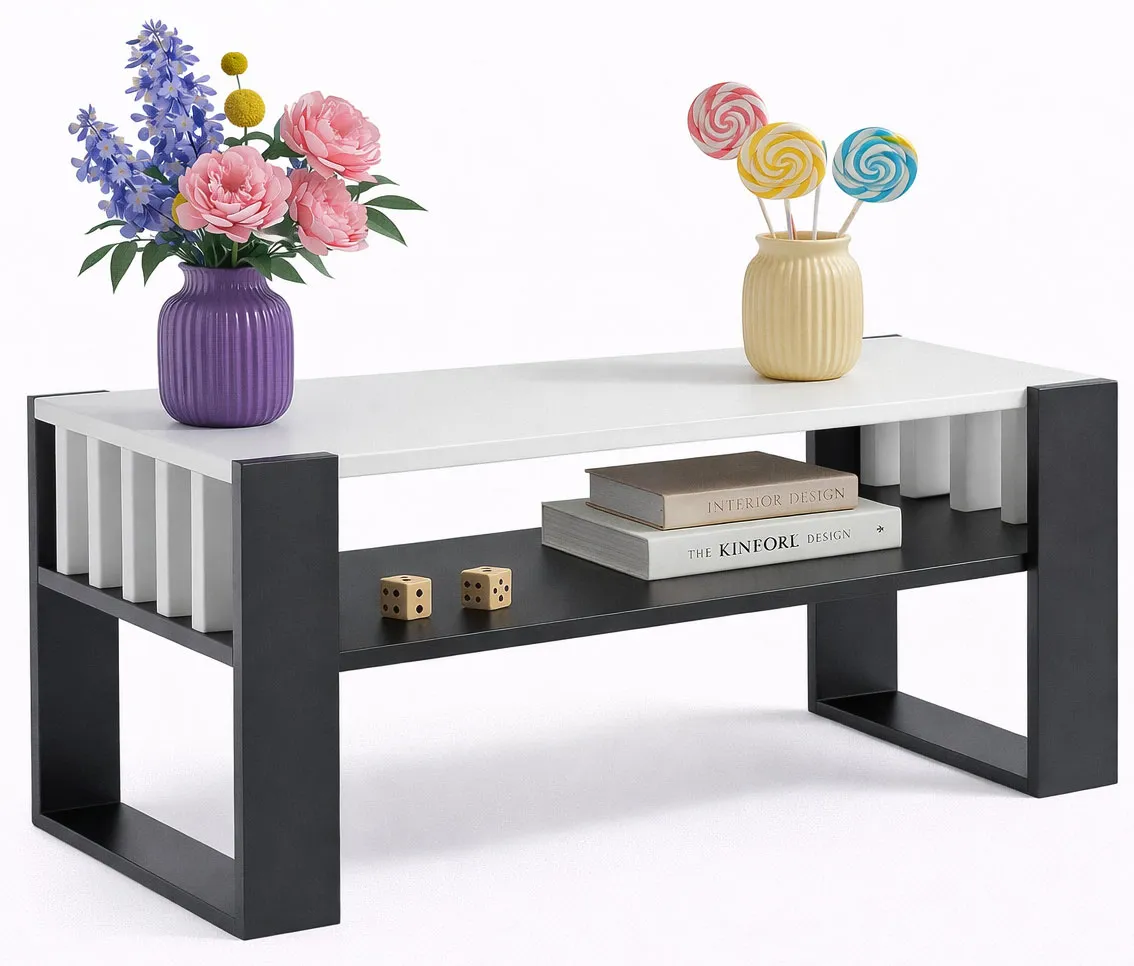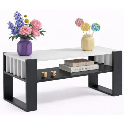 Dotyczy: Nowoczesna ława kawowa z lamelami czarny + dąb artisan - Hestra 3X