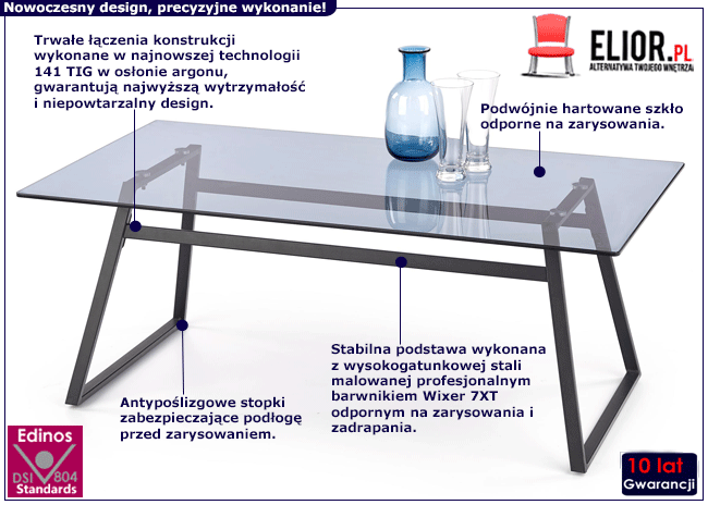 Szklane stoły, ławy oraz stoliki kawowe stały się w ostatnim czasie bardzo popularne. Dzieje się tak dlatego, że jest to doskonałe rozwiązanie nie przytłaczające wnętrza, a wręcz dodające lekkości całej aranżacji. Szkło wkomponowuje się w aranżację niczym kameleon, świetnie uzupełnia inne meble i optycznie powiększa wnętrze. Vomero to nowa propozycja od niezastąpionych projektantów marki Elior. Przestronna, nieskazitelnie gładka tafla szklanego blatu unosząca się na czarnej, designerskiej podstawie prezentuje się niezwykle elegancko i wprowadza do wnętrza odrobinę błysku. Mocna i stabilna konstrukcja ławy zapewnia zaś komfort na najwyższym poziomie. Vomero charakteryzuje się wyrazistym designem i dbałością o każdy szczegół, a dzięki zgrabnej formie nie zajmuje dużo miejsca. Jeśli więc cenisz profesjonalne i praktyczne rozwiązania, które dodają Twojemu wnętrzu elegancji i klasy ława Vomero jest właśnie dla Ciebie! Świetnie odnajdzie się we wnętrzach w stylu loft, minimalistycznych czy też nowoczesnych. Bez wątpienia Vomero zaskoczy Cię swoją wyrafinowaną prezencją oraz perfekcyjną jakością!