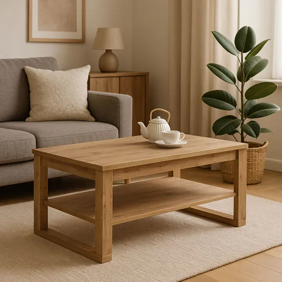 Przemyślany kształt blatu (prostokątny) ułatwia ustawienie ławy w centralnym punkcie salonu lub przy kanapie.