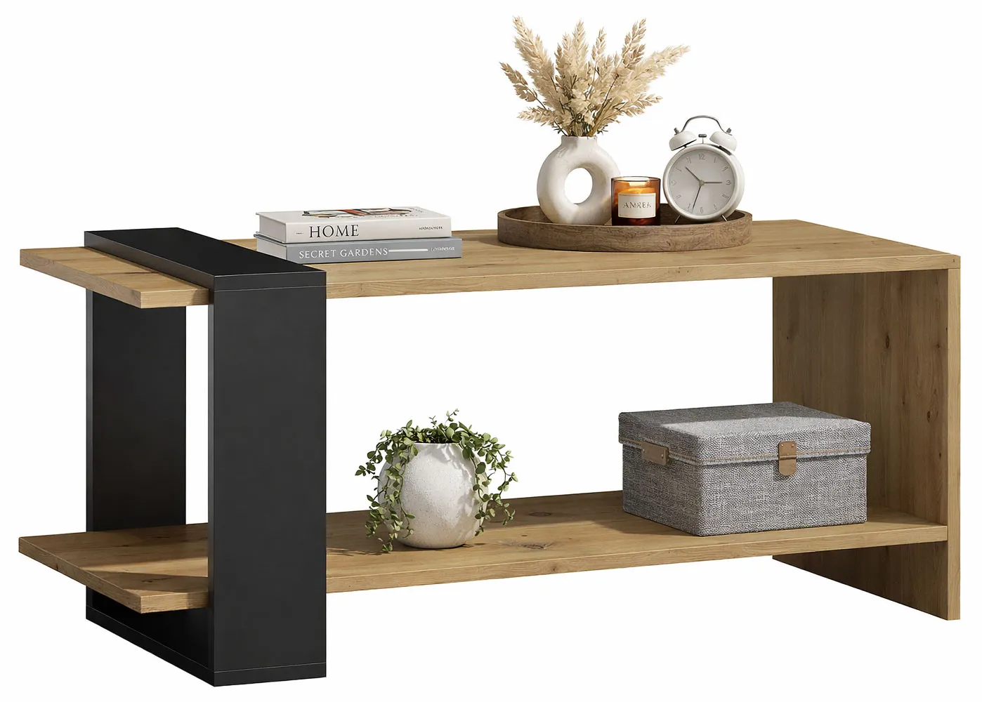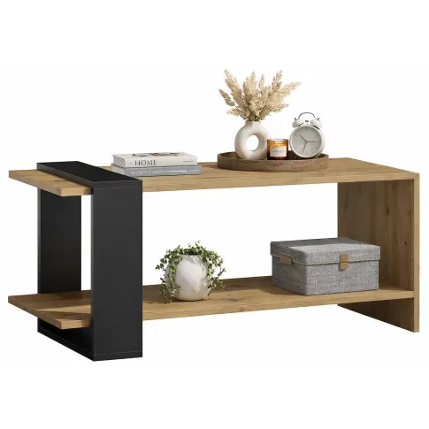 Prostokątna ława z półką dąb artisan + czarny - Preis