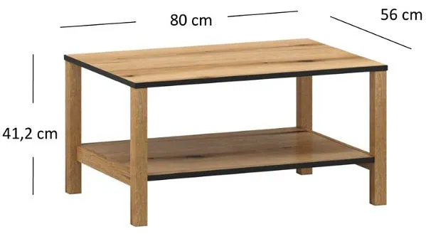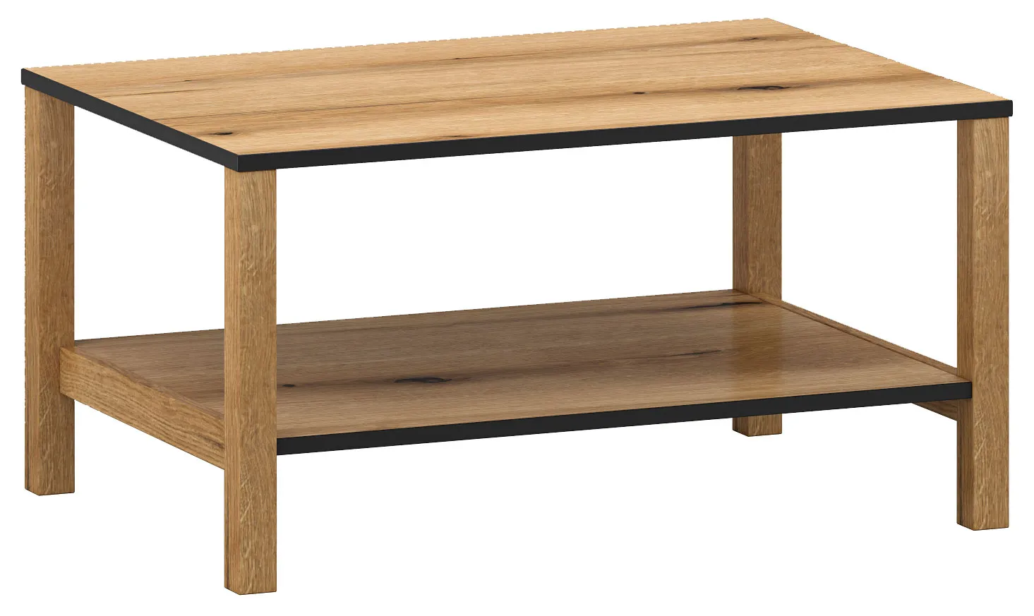 Prostokątna ława z półką dąb evok + czarny - Eccio 5X