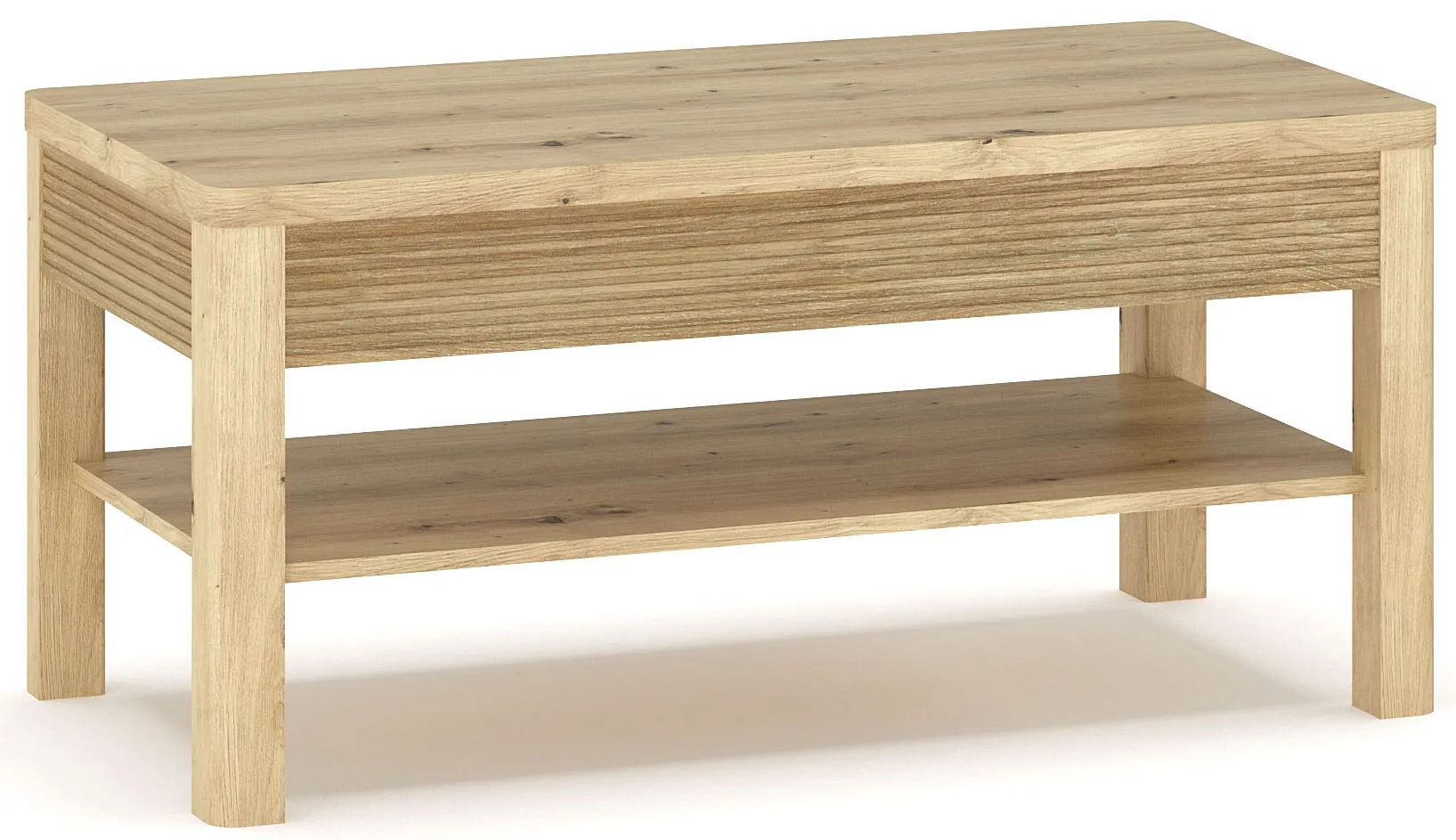 Prostokątna ryflowana ława z półką dąb artisan - Fienna 5X