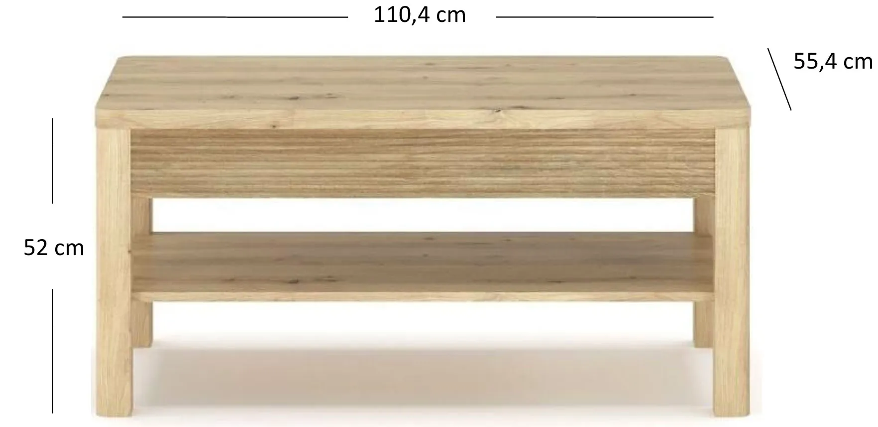 • Szerokość: 110,4 cm, wysokość: 52 cm, głębokość 55,4 cm.