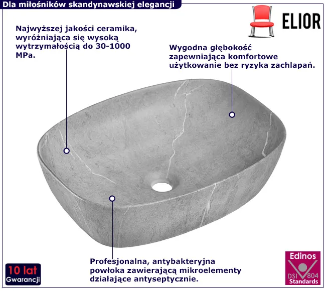 Dotyczy: Szara prostokątna umywalka nablatowa - Solvay 3X