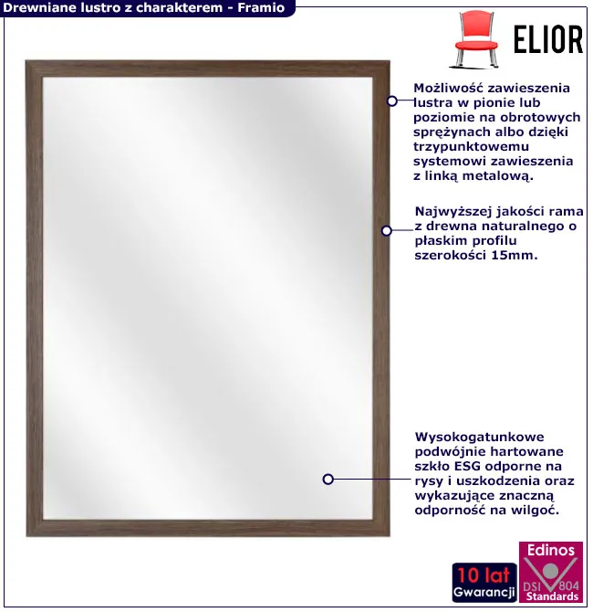 Prostokątne drewniane lustro wiszące orzech - Solma 15 rozmiarów