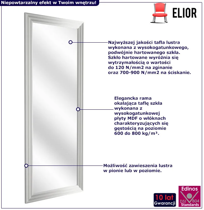 • Kolor: biały. W naszej ofercie posiadamy także inne lustra wiszące.
