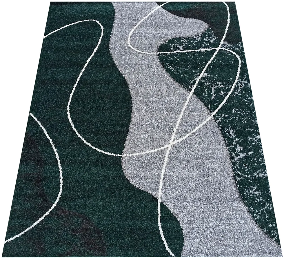 Zielono szary dywan w nieregularne kształty stylu Stolen 5X