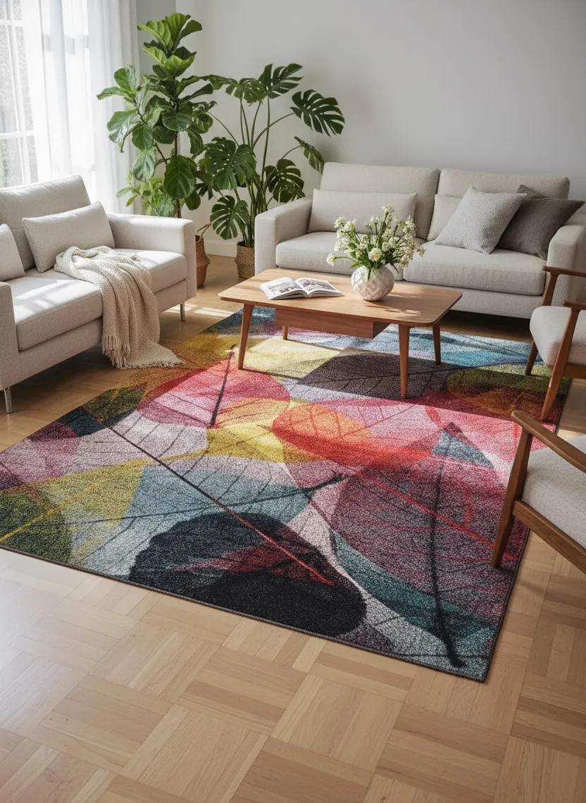 Prostokątny kolorowy dywan w liście - Aben
