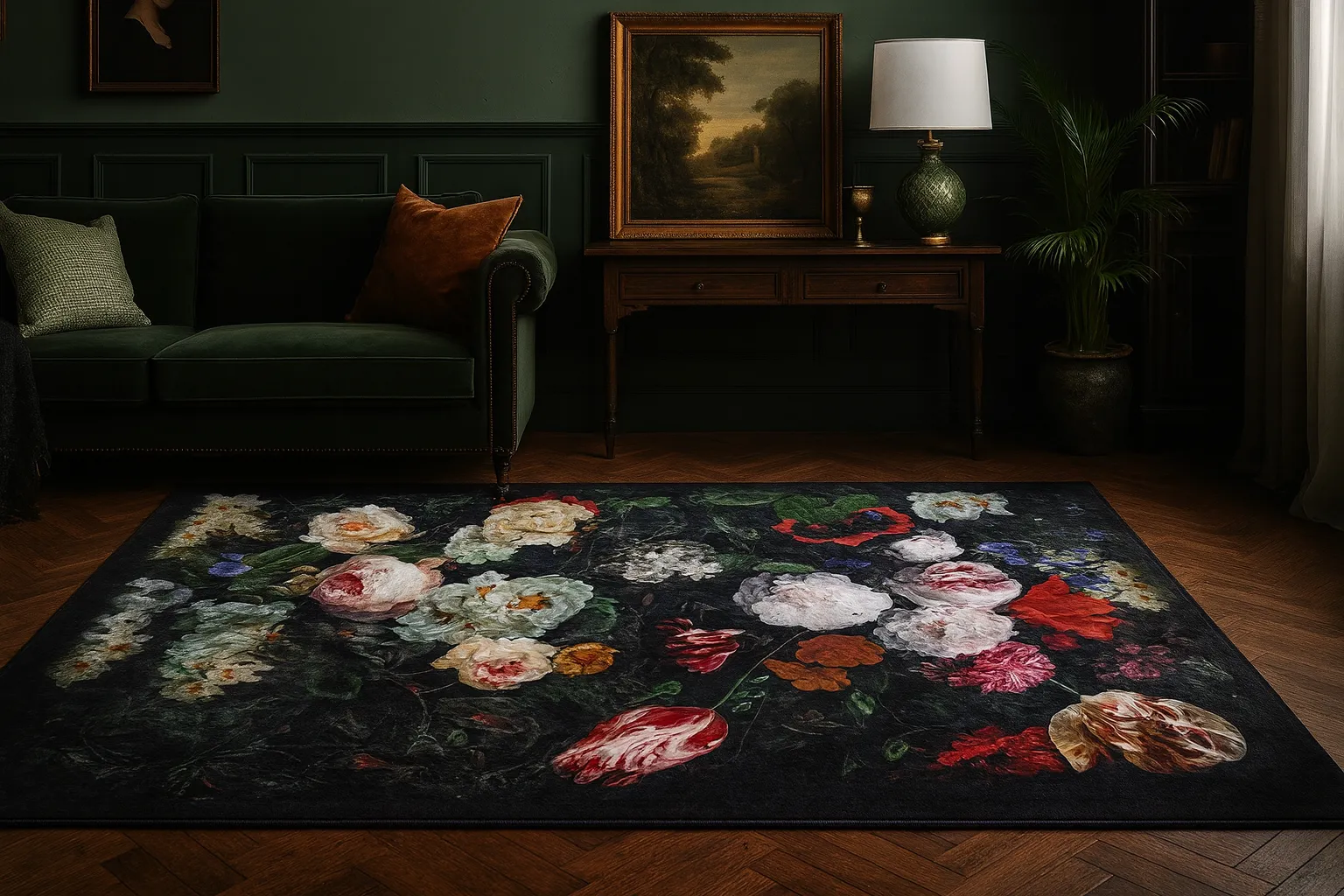 Dotyczy: Prostokątny dywan z motywem liści - Tagi 3X