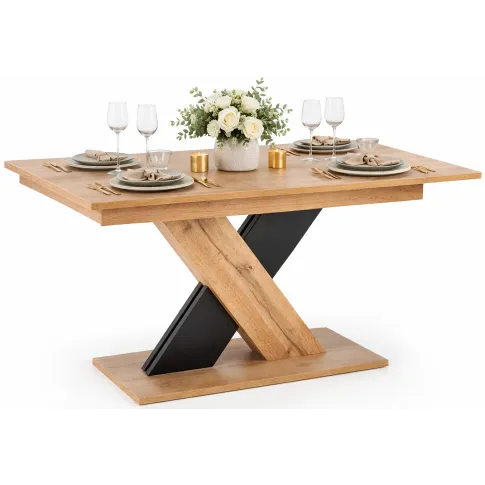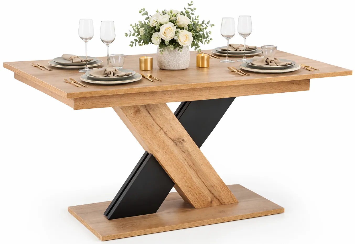 Prostokątny Stół Roslon to nowoczesny projekt o wyjątkowym charakterze. Przestronny, rozkładany blat mebla umieszczony został na modernistycznej podstawie w kształcie litery X, dzięki czemu wyróżnia się niecodziennym designem. Ponadczasowa kolorystyka mebla sprawia, że doskonale wpisuje się on we wciąż zmieniające się trendy wnętrzarskie. Dzięki możliwości rozłożenia blatu na co dzień nie przytłoczy on swoim rozmiarem otaczającej go przestrzeni, a gdy zajdzie taka potrzeba zmieści u swojego boku większą liczbę gości. Roslon doskonale odnajdzie się w aranżacji w stylu skandynawskim, nowoczesnym czy też minimalistycznym.
