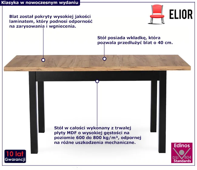 Dotyczy: Rozkładany nowoczesny stół dąb riviera + czarny - Fiaxini