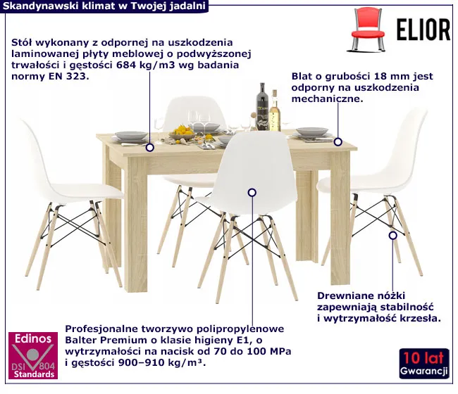 Dotyczy: Biały zestaw stół z 4 skandynawskimi krzesłami - Cinar