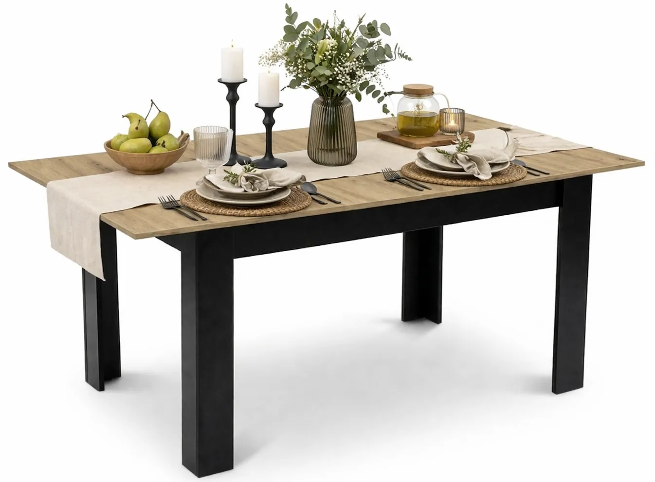 Prostokątny stół rozkładany dąb artisan + czarny - Egasso