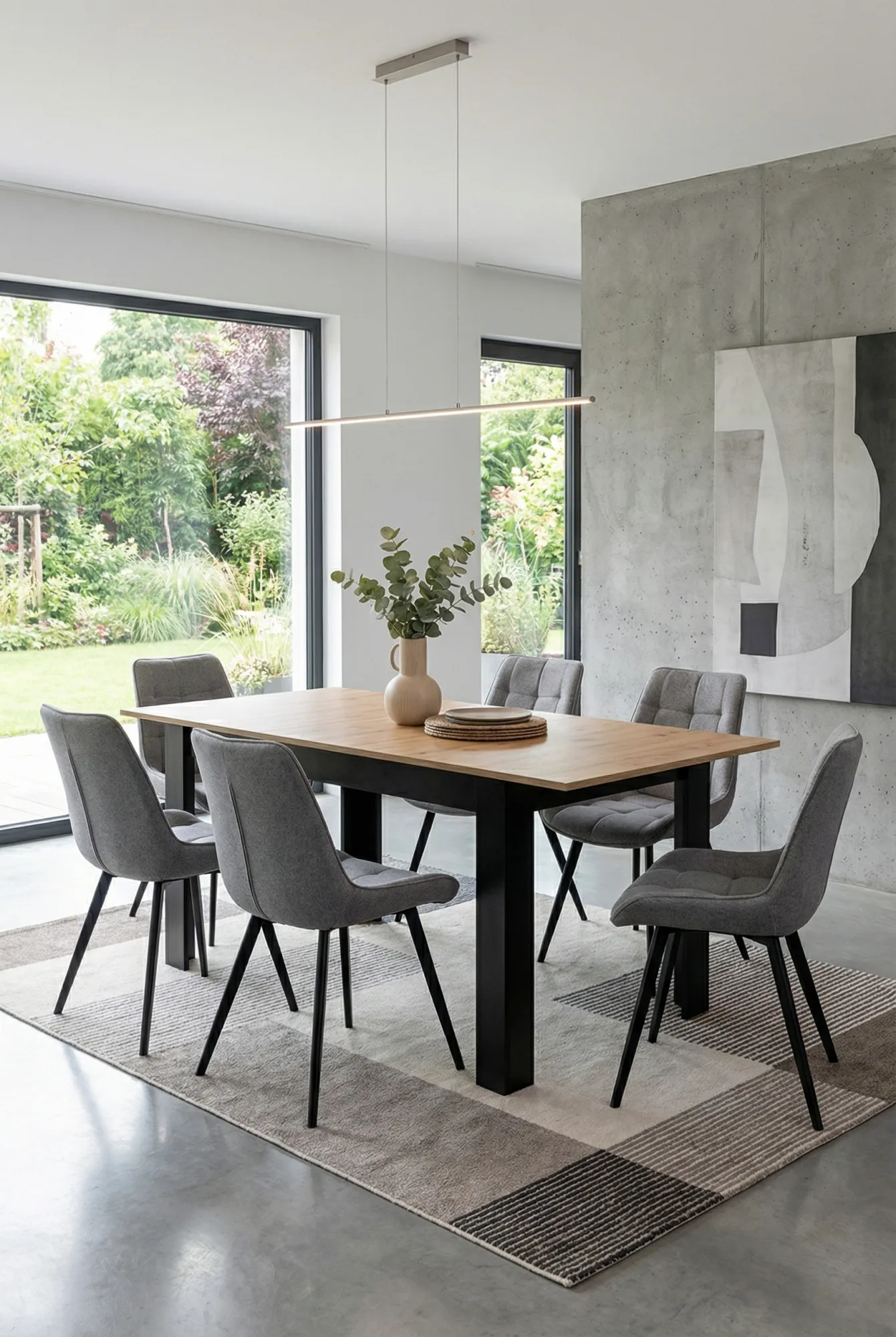 Wnętrze nowoczesne ze stołem Egasso dąb artisan + czarny
