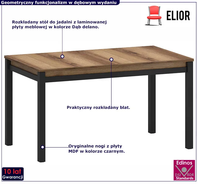 • Kolor: Dąb delano ciemny. Kliknij w link i sprawdź także inne nowoczesne stoły rozkładane w sklepie Edinos.pl.