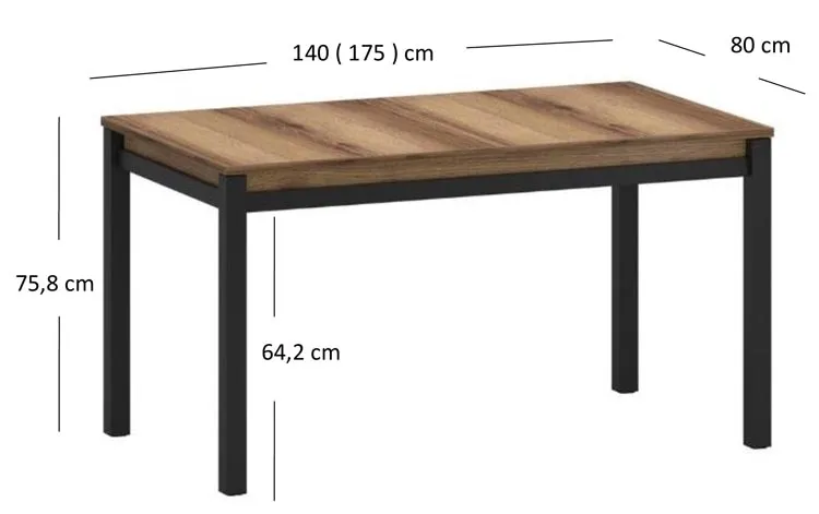 • Wymiary: szerokość: 140-175 cm, wysokość: 75,8 cm, głębokość: 80 cm.