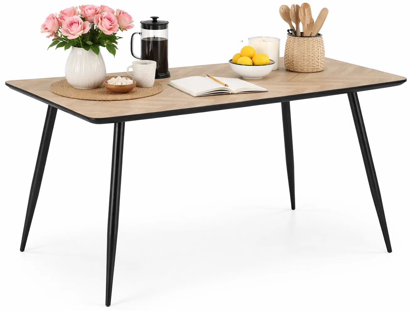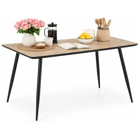 - Unikalny design - Minimalistyczny, a zarazem wyrazisty design stołu z naturalną strukturą blatu i czarnymi, lekko nachylonymi nogami nadaje mu eleganckiego i nowoczesnego charakteru.