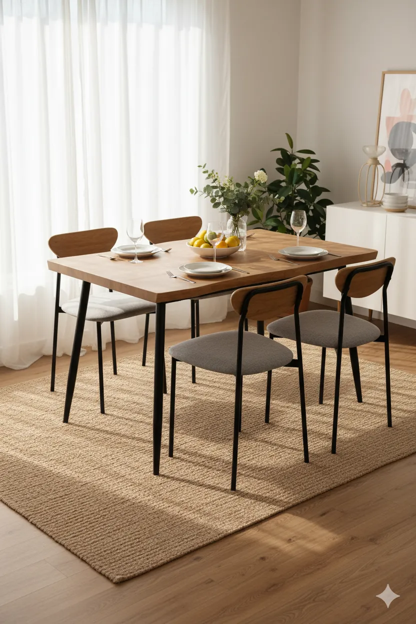 Aranżacja jadalni z prostokątnym stołem z 4 krzesłami - Insea